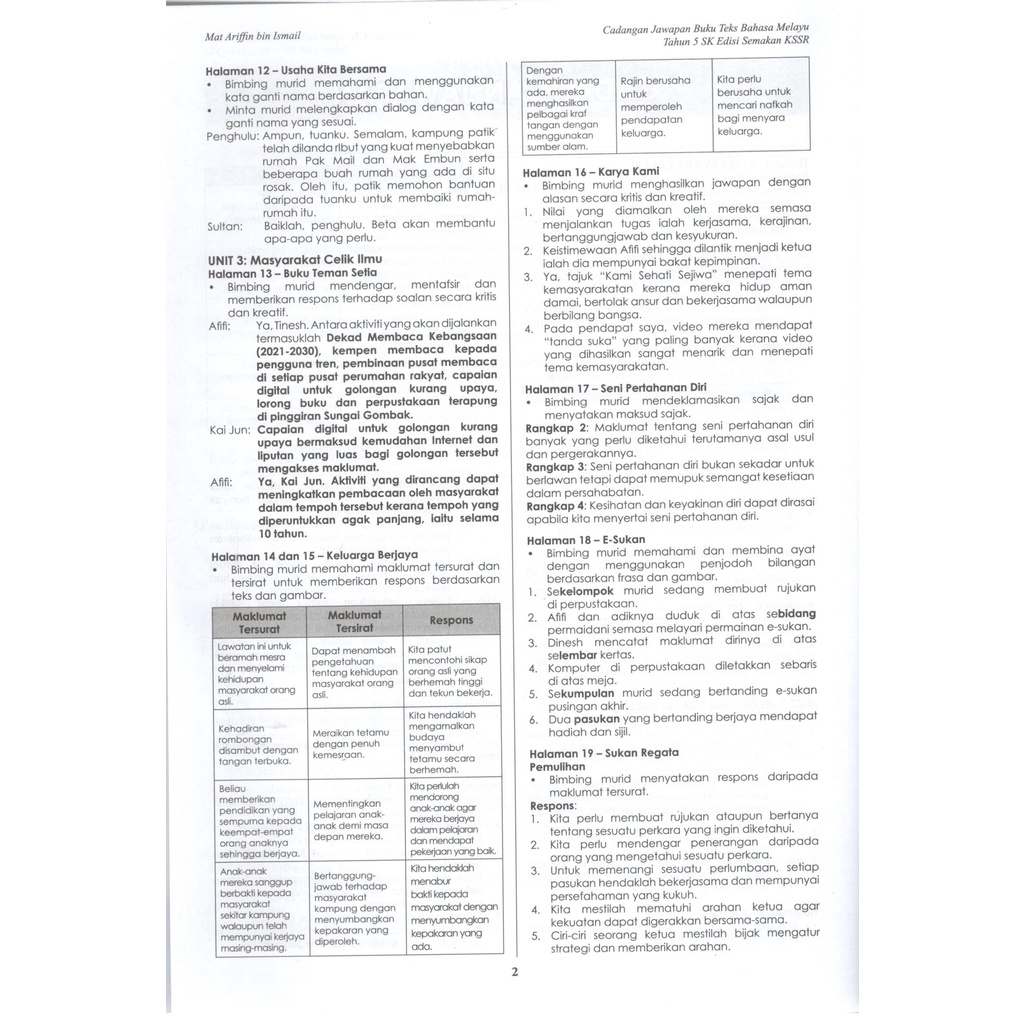 Cadangan Dan Panduan Jawapan Buku Teks Bahasa Melayu Sjk Tahun 5 Shopee Malaysia